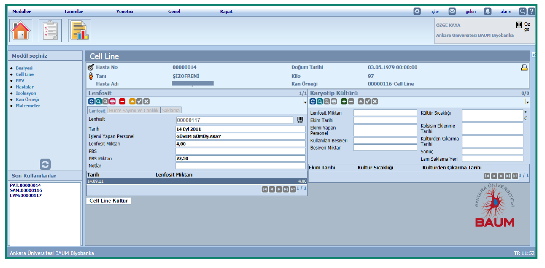 Biobank Information Management System manages and follows up the procedures of processing, testing, labelling, cryopreservation and issuing for biomaterials namely, DNA, RNA, miRNA, proteins and cells.