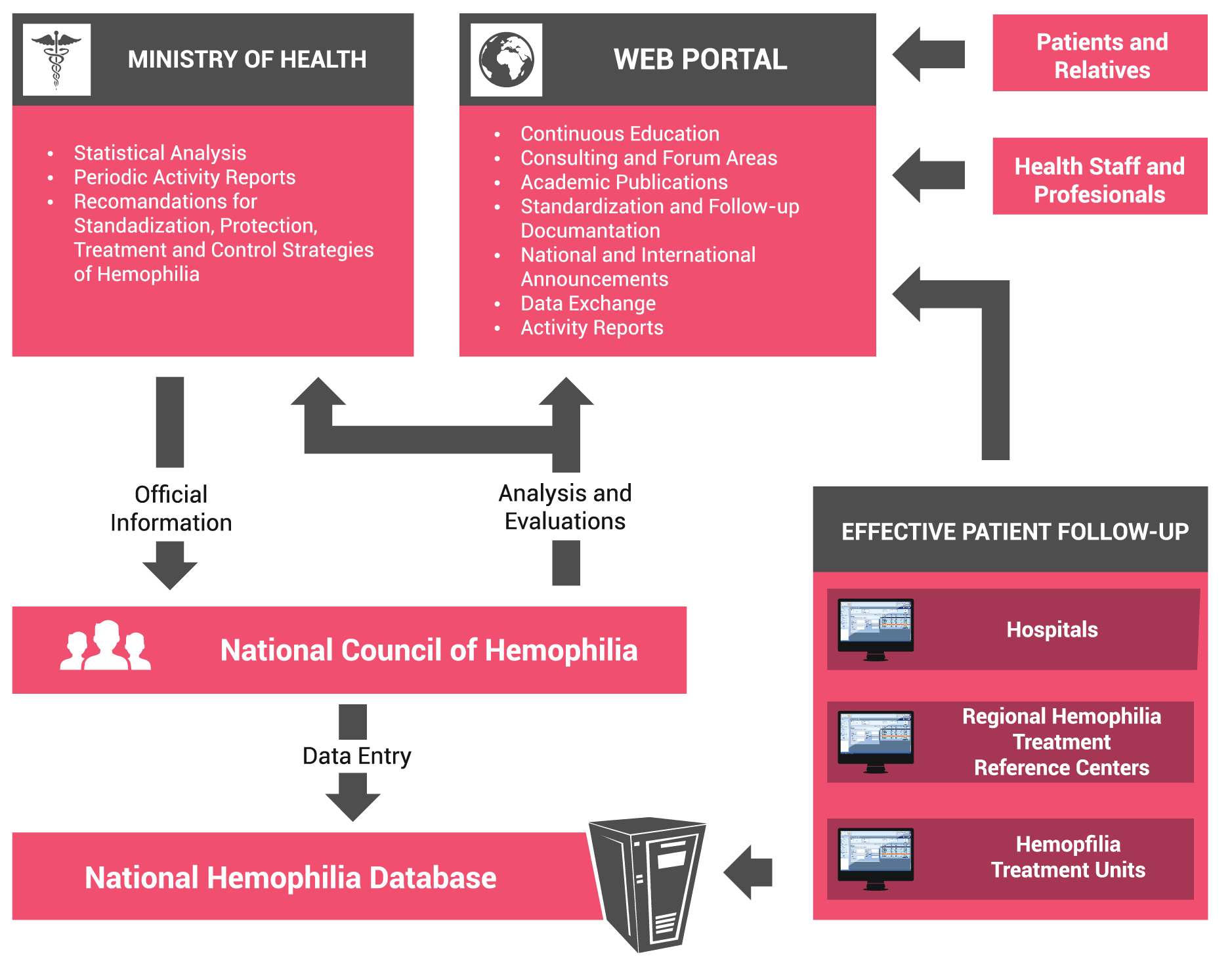 Its surveillance component helps monitor the medicine usage on city/region/country levels to maintain regional self-sufficiency, identify long-term national requirements and strategies, develop corrective measures, improve standards and hemophilia treatment services by collecting data and generating queries, reports and statistics.