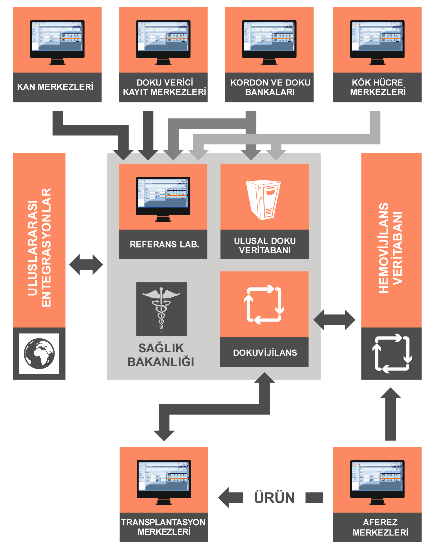 Sistem ayrıca akraba içi tarama prosedürlerini de içerir. Transplantasyona ihtiyacı olan hastanın tüm akraba içi tarama prosedürleri sistemden takip edilir.