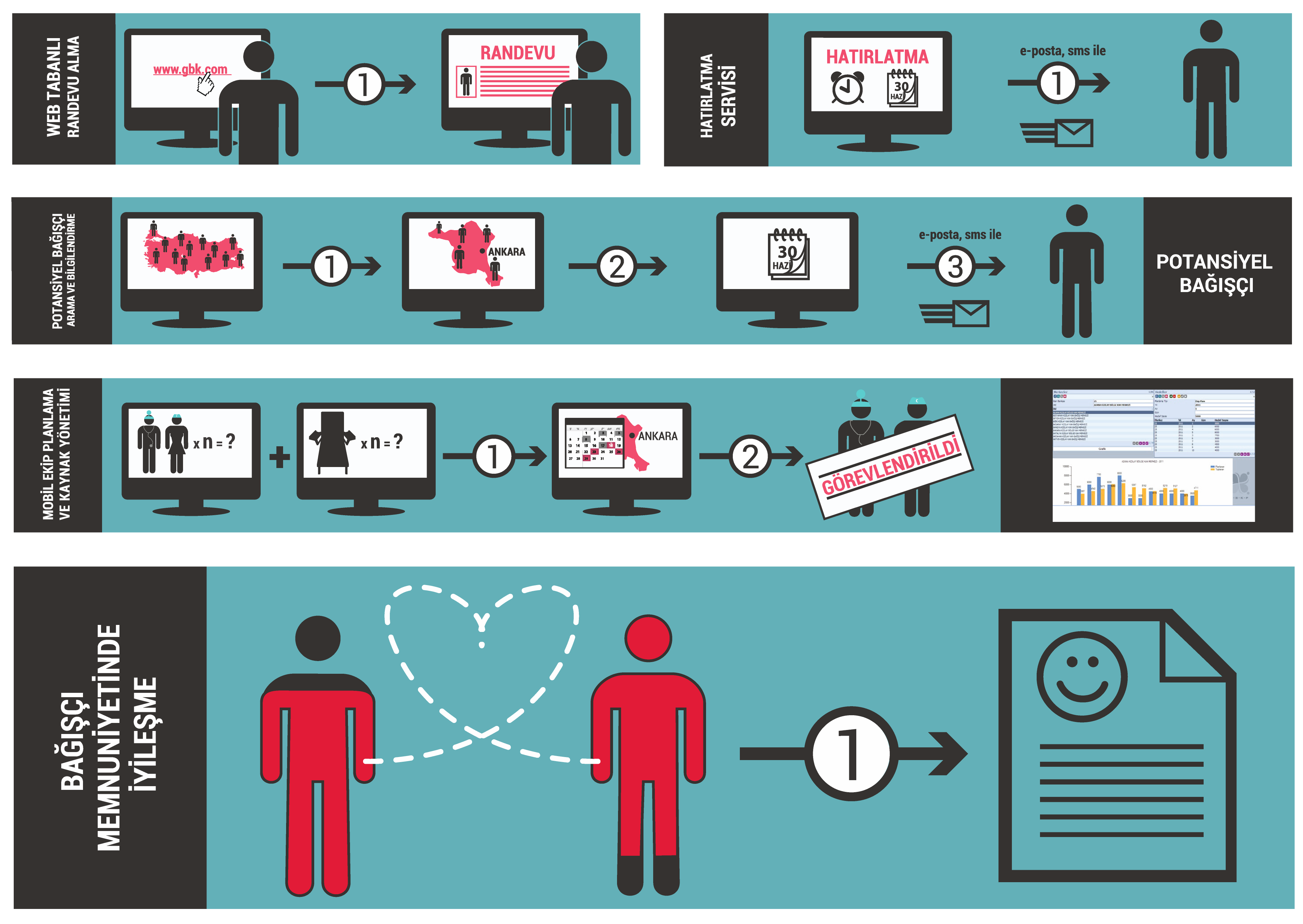 Gönüllü Bağışçı Kazanım faaliyeti yürüten kan bankaları için geliştirilmiştir. Sistem merkezi bağış yönetimi, potansiyel ve düzenli bağışçı iletişim yönetimi (SMS, e-posta, telefon, web portalı), gönüllü bağışçı kazanım faaliyetleri kaynak yönetimi, bağışçı memnuniyet takibi, eğitim faaliyetleri takibi, Hemonline entegrasyonu ile bağışçı kazanım faaliyetleri verimlilik ve başarı takibi özelliklerini bünyesinde barındırır.